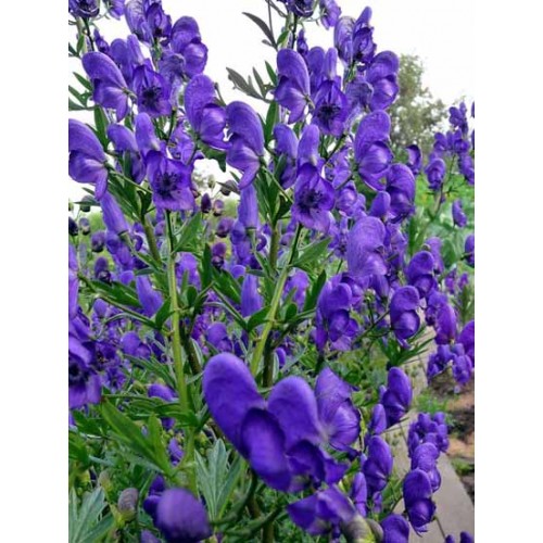 Аконит с красивыми, цветущими ярко-синими свечками часто путают с дельфиниумом. Однако строение его цветка особенное: верхний лепесток напоминает гладиаторский шлем, который дал растению второе название - борец. Под этим шлемом располагаются два похожих на сапожки нектарника одного с ним цвета. Красивы и листья аконита: как и у всех лютиковых, они пальчато-рассеченные. Верхняя их часть темно-зеленая глянцевая, а нижняя – сизоватая или с характерным мучнистым налетом. Высота растения 70-100 см..