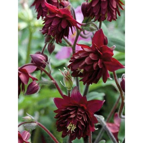 Сорт аквилегии Руби Порт обрел популярность благодаря пышным махровым цветкам красивой формы. Яркая темно-бордовая окраска лепестков, напоминающая цвет спелой вишни, и желтые тычинки, хорошо выделяющиеся на их фоне, также привлекает внимание. Цветки собраны в соцветия-метелки. Кустик вырастает небольшой – 70-80 см в высоту и до 40 см в диаметре. Рассеченные ажурные листья собраны в прикорневые розетки. Растет на одном и том же месте 4-5 лет, потом требует пересадки.