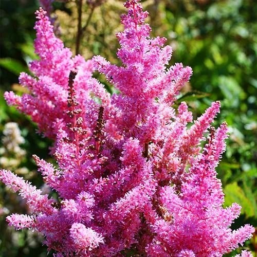 Астильба сорта Америка — теневыносливый многолетник, с многочисленными прямостоячими побегами, образующими плотную крону. Высота растения до 70 см. Цветёт в начале-середине июля на протяжении 20 дней. Розово-сиреневые метельчатые соцветия обладают лёгким ароматом. Эффектно смотрится в одиночных посадках и миксбордерах.