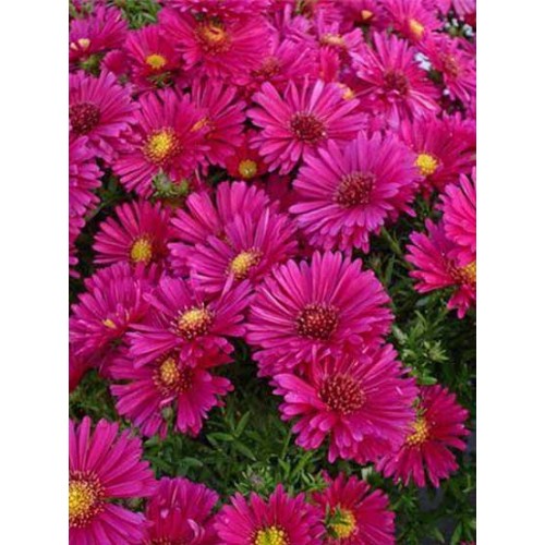 Сорт компактный, не требует подвязки. Стебли прямостоячие, густые, хорошо развлетвленные, что создает обьем. Образует раскидистые кусты до 45-50 см высотой. Листья тёмно-зелёные, ланцетные, мелкие, гладкие. Соцветия - корзинки насыщенного рубинового цвета с желтым центром около 3 см в диаметре, собраны в крупные метельчатые соцветия. Цветет в октябре.