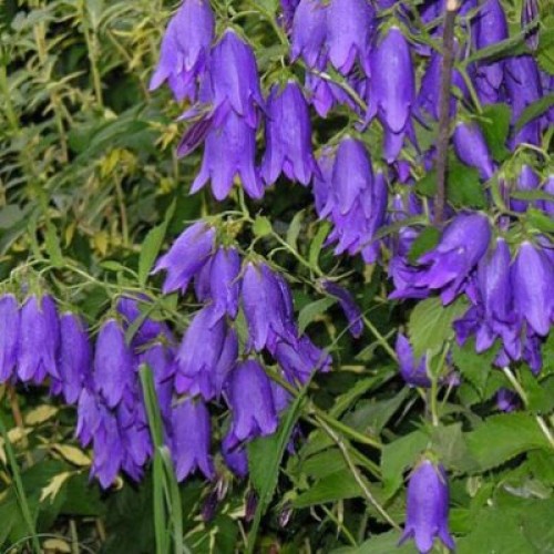 Крупный прямостоячий куст высотой до 60 см. Листья глянцевые, светло-зелёные. Цветки крупные, длиной до 8 см, поникающие, тёмно-синие. Крепкие цветоносы не нуждаются в подвязке. Цветёт обильно и длительно в июне-августе.
