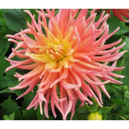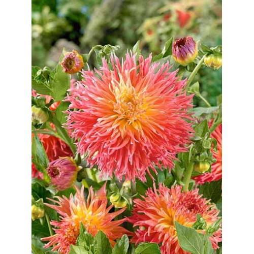 Махрові лососево-рожеві квіти. Залежно від температури повітря відтінок може бути світлішим або насиченим. Пелюстки, з гострими кінчиками, скручені в трубочки. Розмір суцвіття: 15-20 см. Висота куща: 80-100 см.