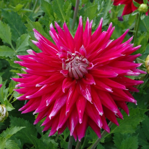 Білі кінчики квітки підкреслюють яскраве забарвлення та привертають увагу до великого розміру.