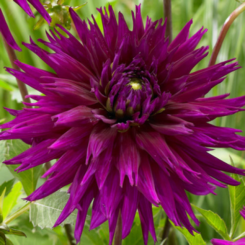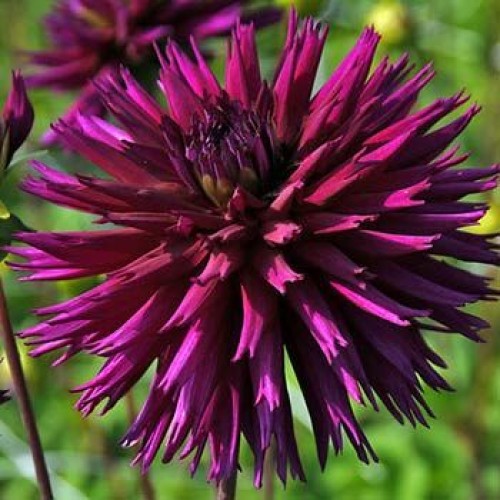 Приголомшливе забарвлення суцвіття! Дуже гарний, темно-ліловий, майже фіолетовий колір бутону. Пелюстки із сильно розсіченими кінчиками згорнуті в трубочки.