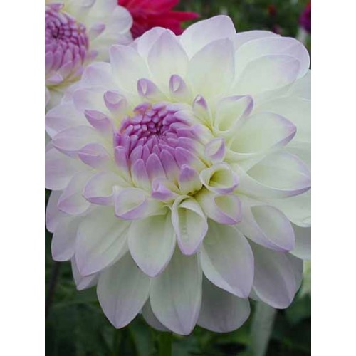Производит крупные, шаровидные, цветки на очень длинных стеблях. Цветет длительное время. Соцветия состоят из многочисленных рядов белых или цвета слоновой кости, лепестков, которые приобретают лавандовый румянец на краях, бледно-желтые у основания. Цветки красиво контрастируют с листвой.