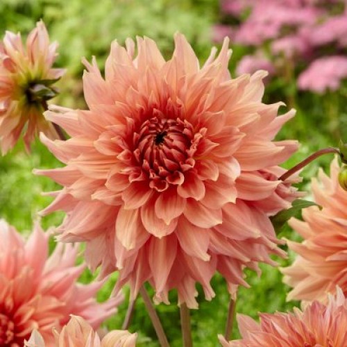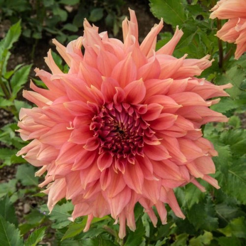 Одна з найбільших жоржин з махровими, темно-абрикосовими квітами.
