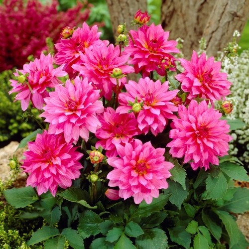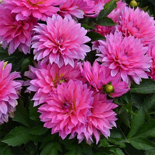Низькоросла, компактна, пишна жоржина з великими бузково-рожевими квітками.