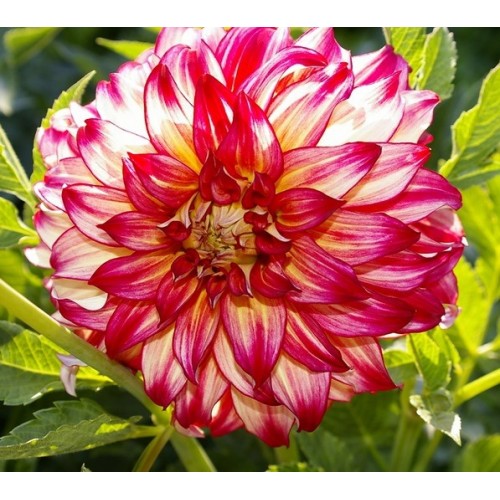 Кінчики загострених та відігнутих пелюсток прикрашені контрастним вишнево-червоним відтінком. Розмір суцвіття: 20-25 см. Висота куща: 90-100 см.
