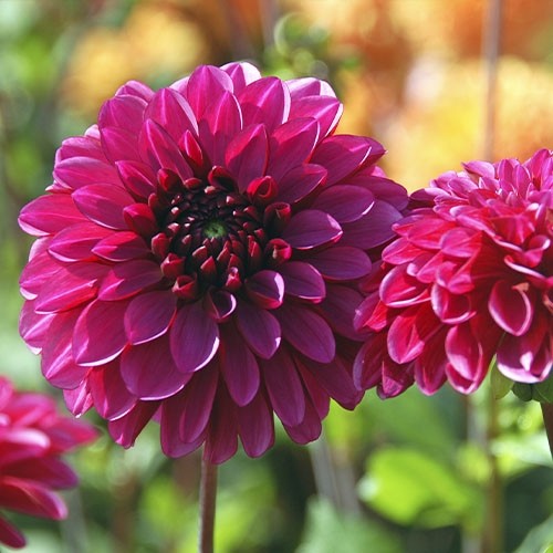 Декоративна махрова жоржина з плоскими, злегка загостреними на кінчиках, насичено-ліловими пелюстками. Розмір суцвіття: 10-15 см Висота куща: 80-100 см