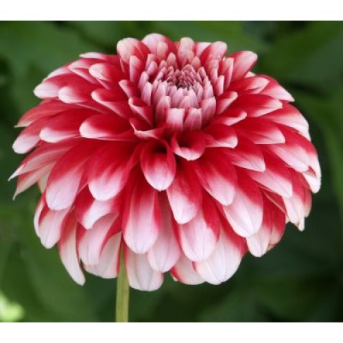 Цветок махровый, среднего размера, лепестки красные с белыми кончиками