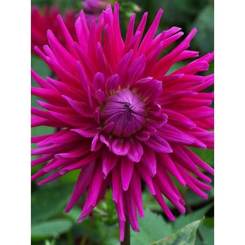 Orfeo - высокорослая представительница кактусовых георгин. Длинные ярко-фиолетовые лепестки слегка закручены по спирали, из-за чего соцветия кажутся такими пышными и восхитительными. Соцветия насыщенно лиловые, с фиолетовым сгущением оттенка в средней части цветка, выглядят просто изумительно на фоне темно-зеленой листвы, создавая эффектный контраст.
