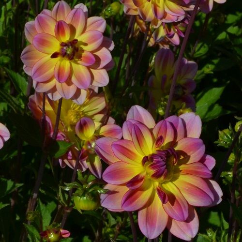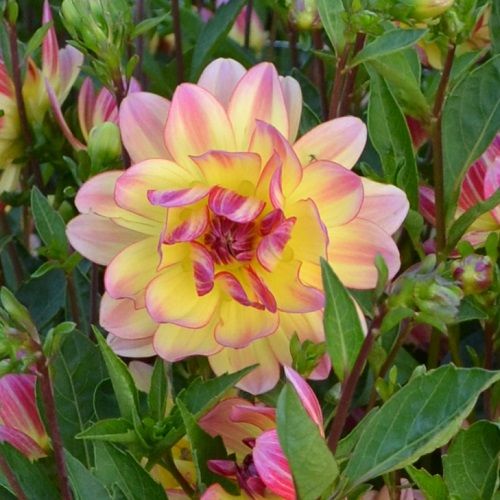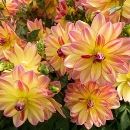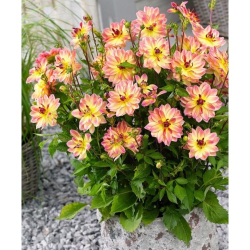 Ніжно-жовта квітка, кінчики пелюсток рожеві. Зацвітає в середині липня, цвітіння продовжується до перших заморозків. Розмір суцвіття: 5-10 см Висота куща: 60-90 см