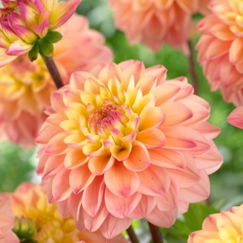 Посадка клубней георгин осуществляется в апреле-начале мая, в богатую питательными веществами почву. Георгины светолюбивые растения, поэтому рекомендуется высаживать на хорошо освещенных местах защищенных от ветра. Глубина посадки георгин 10-20 см, в зависимости от размера клубней. Для стимулирования цветения отцветшие бутоны георгины необходимо удалять.