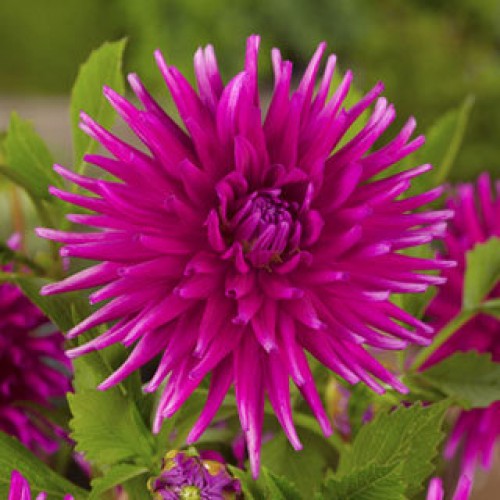Дуже гарна махрова жоржина з фіолетовими суцвіттями. Розмір суцвіття: 10-15 см. Висота куща: 80-100 см.