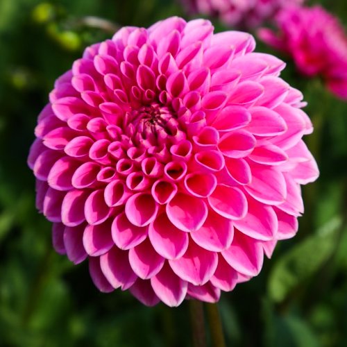 Сандра - привлекательный сорт шаровидной георгины с аккуратными и плотно набитыми бутонами. Лепестки лилово-розовые, с легким перламутровым оттенком при ярком освещении.