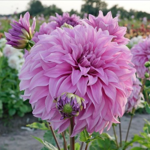 Розкішна жоржина лавандового кольору! Абсолютно незвична форма пишних суцвіть, несхожа на жоден інший сорт.