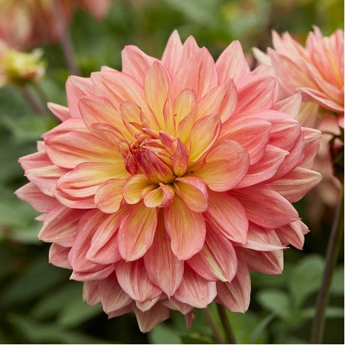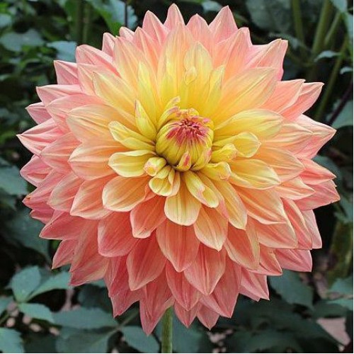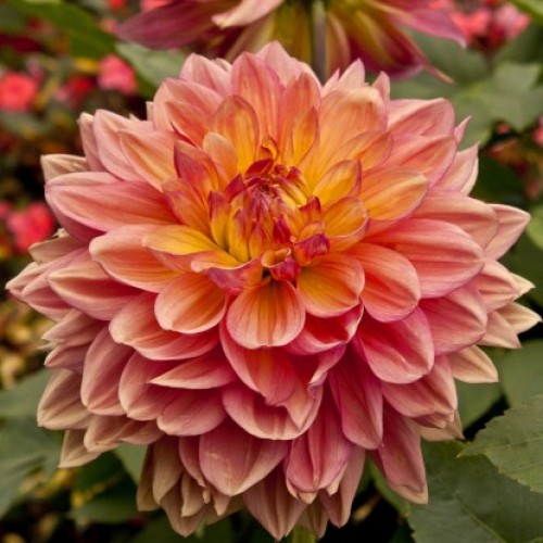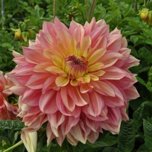 Чудова, високоросла, коралово-рожева жоржина із серії Dinnerplate з дуже великим, досконалої форми суцвіттям, як найкраще прикрасить Ваш сад своїм яскравим цвітінням.