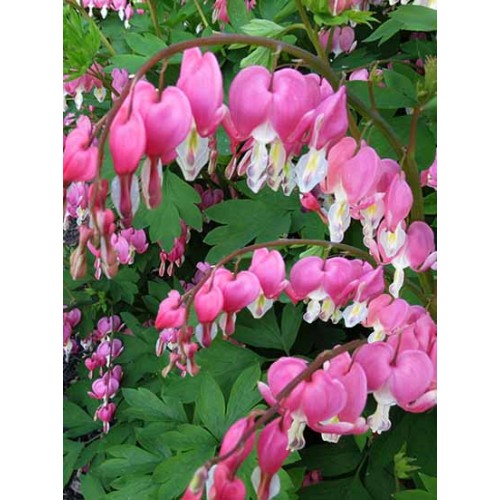 Дицентра великолепная (D. spectabilis), другие названия: сердцецвет великолепный, разбитое сердце, дицентра спектабилис, многолетник высотой до 1 м с крупными перисто-рассеченными листьями, сверху зелеными, снизу сизыми, расположенными на длинных, до 12 см, черешках. Стебли мясистые, разветвленные, густо облиственные. Цветки сердцевидной формы диаметром до 3 см собраны в соцветия-кисти длиной до 20 см на концах стеблей и в пазухах листьев в верхней части побегов. Цветет в мае-июне около месяца, после чего надземные органы отмирают, и растение переходит в состояние покоя до весны.