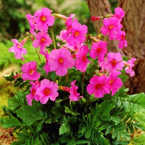 Инкарвиллея Делавея (Incarvillea delavayi) — многолетник высотой около 1 метра с собранными в прикорневую розетку крупными, перистыми листьями до 30 см в длину и шестисантиметровыми цветками, собранными по 3-4 шт в соцветиях. Цветение эта инкарвиллея начинает в июне, радует больше 1 месяца