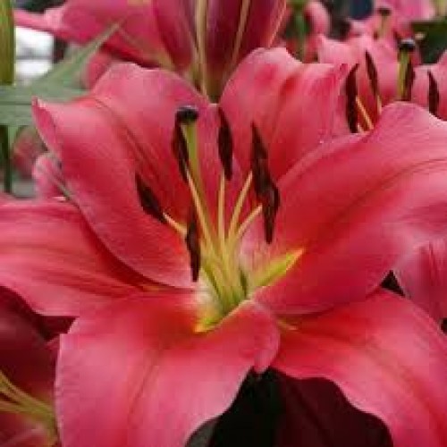 Лілія Сенсі (Sensi), 1 цибулина Яскравий представник групи ОТ-гібрид, надзвичайно красива, витончена і ароматна, відрізняється рясним цвітінням. Лілія Сенсі володіє унікально насиченим кольором - ефектні червоно-рожеві, щільні і злегка хвилясті пелюстки з перламутровим глянцем. Горловинкой квітки лаймово-зелена.