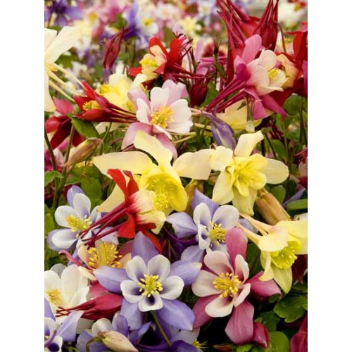 Красивоцветущее растение, незаменимое в цветниках начала лета. Народное название аквилегии - водосбор. Аквилегия это изящное растение с ажурными серо-зелеными листьями и привлекательно окрашенными цветками необычной формы. Смесь различных аквилегий гибридов Мак Кана удивит вас сиреневыми, бордовыми, розовыми, желтыми, фиолетовыми цветками, у которых венчик и коронка могут быть контрастного цвета. Красивы и цветки, у которых венчик и коронка одного цвета, но разных оттенков. У каждого цвета имеются декоративные шпорцы длиной до 5 см., прямые, с чуть загнутым кончиком. Время цветения - начало июня месяца. Высота растения до 80 см..