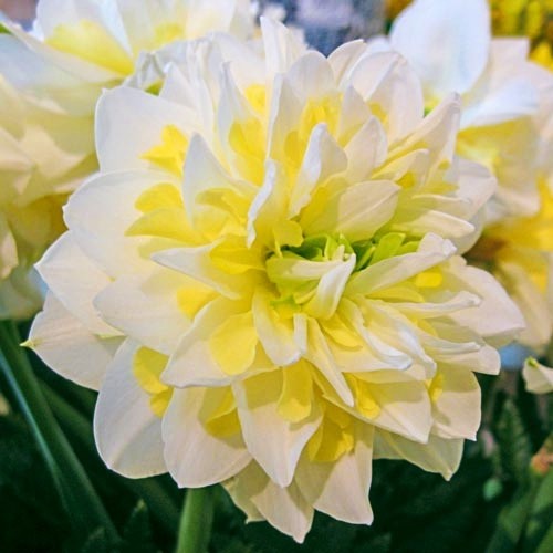 Цвет:  белый околоцветник, слегка перекрытый ярко-оранжевой сплит-короной.