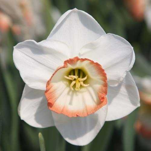 Night Cap - это сильный сорт с красивой оранжево-желтой серединкой выглядит просто невероятно, относится к типу крупнокорончатых. Сочетание нежного белого и ярких красок выглядит интересно, именно такой необычный окрас привлекает внимание к цветку.