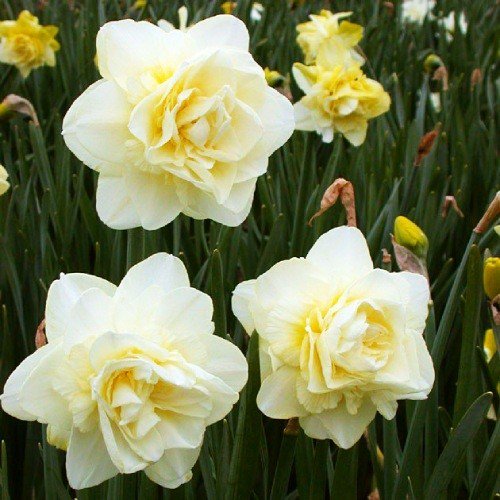 Нарцисс Obdam нежный и изящный сорт, выделяющийся густомахровыми белоснежными цветками, потрясающе смотрится в сочетании c другими весенними цветами на клумбе и в букетах.