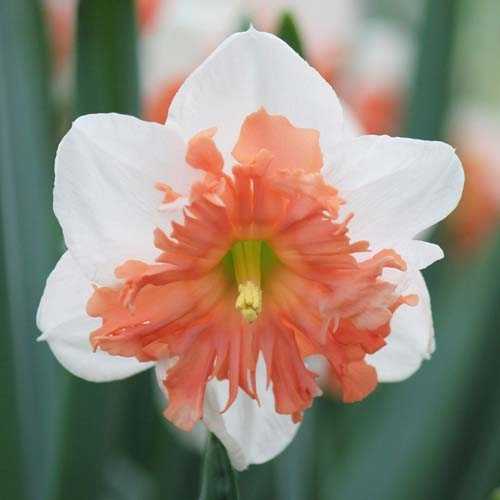 Цвет:  белый околоцветник, слегка перекрытый ярко-оранжевой сплит-короной.