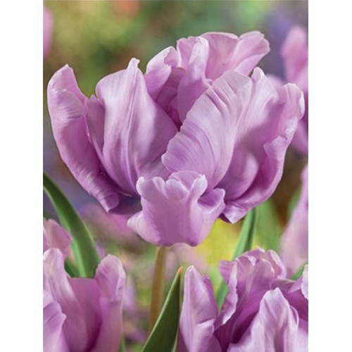Попугайные тюльпаны имеют необычный и экзотический вид - их лепестки имеют глубоко изрезанные края, иногда волнистые, чем напоминают растрепанные птичьи перья. Широко раскрытый цветок может достигать в диаметре и до 20 см.. Окраска у попугайных тюльпанов встречается самая разнообразная: от белоснежной до пурпурно-черной. Продолжительность цветения до 2 недель.