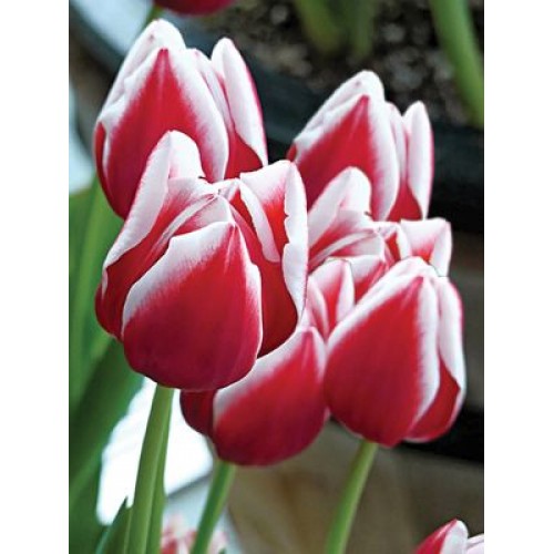 Тюльпанам класса Триумф характерны крупные бокаловидные цветки, довольно высокие цветоносы (40-70 см.) и хороший коэффициент размножения. Окраска цветов у тюльпанов этого класса самая разнообразная: от чисто-белой до темно-фиолетовой. Цветут Триумф - тюльпаны в конце апреля - начале мая, довольно продолжительное время и хорошо сохраняют форму бокала.