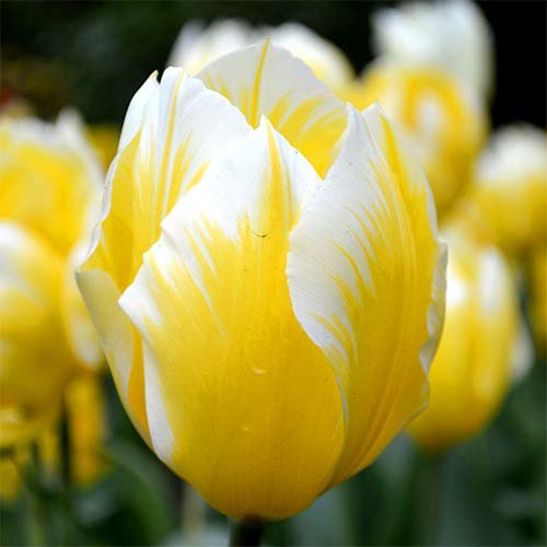Цветок у тюльпана Фостера Sweetheart превосходной формы, имеет солнечно-желтый бокал, который дополнен белым нежным "оперением" по краям лепестков.