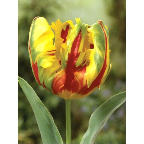 Попугайные тюльпаны имеют необычный и экзотический вид - их лепестки имеют глубоко изрезанные края, иногда волнистые, чем напоминают растрепанные птичьи перья. Широко раскрытый цветок может достигать в диаметре и до 20 см.. Окраска у попугайных тюльпанов встречается самая разнообразная: от белоснежной до пурпурно-черной. Продолжительность цветения до 2-3 недель.