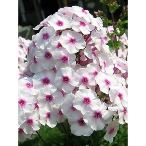Цветет обильно и очень продолжительно, цветение у этого сорта начинается с июля и длится до конца сентября, а в южных регионах и до первых заморозков. В период цветения на макушке флокса Европа образуется целая шапка невыразимо прекрасных цветов с белоснежными лепестками и нежно-розовым центром. Крупные, до 4,5 см в диаметре цветы этого сорта флокса собраны в пышные соцветия-кисти размером до 20 см.