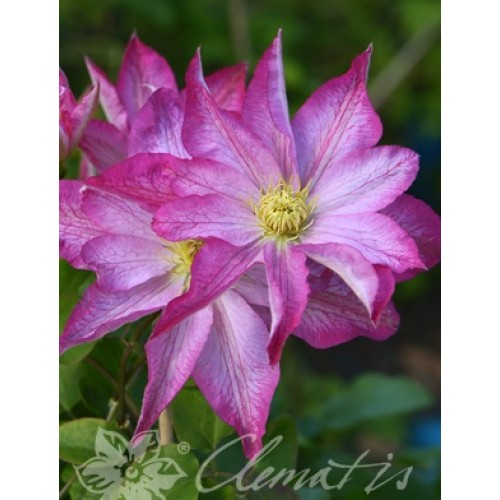 Клематис крупноцветковый Асао - японский сорт. Сорт умереннорастущий. Зацветает рано. Цветки ярко-розовые со светлой центральной полосой и жёлтыми пыльниками. На перезимовавших побегах может цвести полумахровыми цветками.