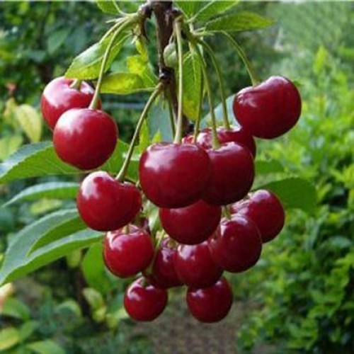 Характеристика плода: плоды крупные, весом около от 5 до 10 гр., шаровидные, немного сжатые с боков. Мякоть темно-вишневого цвета, рыхлая, кисло-сладкого вкуса. Сок окрашен. Плодоножка средней длины, плод от нее отделяется легко. Плоды десертного вкуса, пригодны для всех видов переработки.