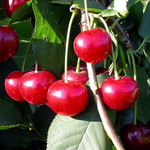 Характеристика плода: плоды средних и выше средних размеров (средняя масса около 5-5.5 гр.), слегка продолговатые, блестящие, вишнево-красные с небольшими слабо выраженными яркими и темными участками, что придает им нарядность. Мякоть темно-красная, вкусная, сок темноокрашенный, рубиново-вишневого цвета. Отрыв ягод сухой.