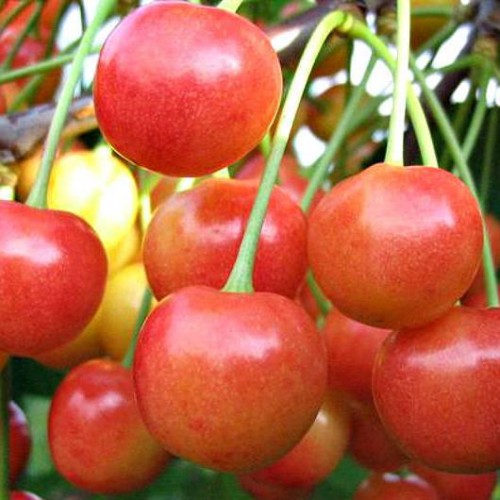 Характеристика: Райнер - це один з найсмачніших сортів жовтої черешні. Плоди середнього розміру, масою 8-9 гр, широкосердцевидной форми, жовтого кольору. При дозріванні ягоди покриваються яскраво-червоним рум'янцем. М'якоть черешні цього сорту кремова, соковита, дуже солодка на смак.
