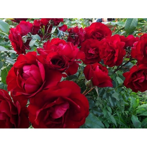 Характеристика квітки: квітки середнього розміру (5-7 см в діаметрі), махрові (до 30-45 пелюсток), криваво-червоні, не втрачають свою привабливість після дощу.