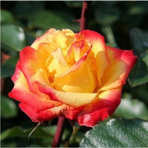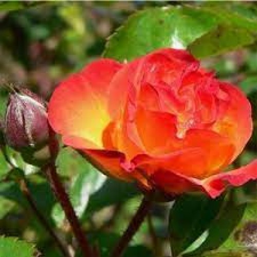 Красою цієї квітки милуються всі без виключення. Її унікальні квіти не залишають шансу байдужості - серединка, забарвлена в яскраво жовте, з переходом на яскраво-червоне забарвлення країв пелюсток. Квітки невеликі, але їх багато, вони зібрані у великі суцвіття (з'являються в кистях від 3 до 7 шт. все літо), розпускаються поступово, протягом декількох тижнів. Квітки махрові (до 25 хвилястих пелюсток), довго не відцвітають - кущ здається постійно у квітках по всій поверхні, як у сучасних грунтопокривних троянд. Вони чудово витримують спеку та дощ, довго тримаються на кущі.