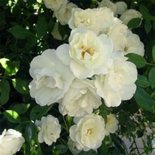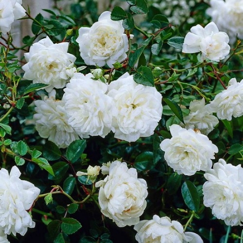 Характеристика квітки: квітки білого кольору, дуже гарної, чашоподібної форми. Бутони довгі, загострені. Квітки невеликі, але їх багато, вони зібрані у великі суцвіття (з'являються в кистях від 3 до 7 шт. все літо), розпускаються поступово, протягом декількох тижнів. Квітки махрові (до 25 хвилястих пелюсток), довго не відцвітають - кущ здається постійно у квітках по всій поверхні, як у сучасних грунтопокривних троянд. Вони чудово витримують спеку та дощ, довго тримаються на кущі.