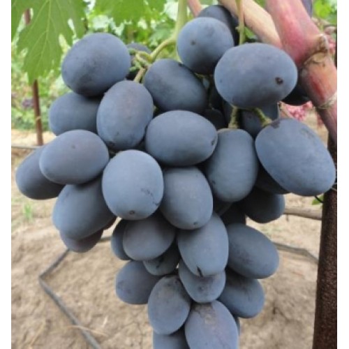 Характеристика грозди и ягоды: грозди очень крупные, весом 600-800 гр. (отдельные грозди могут достигать и 2.5 кг.), средней плотности, конической формы (в длину могут достигать до 40 см.). Гроздья практически не имеют мелких ягод, именно поэтому данный сорт может похвастаться прекрасным товарным видом.
