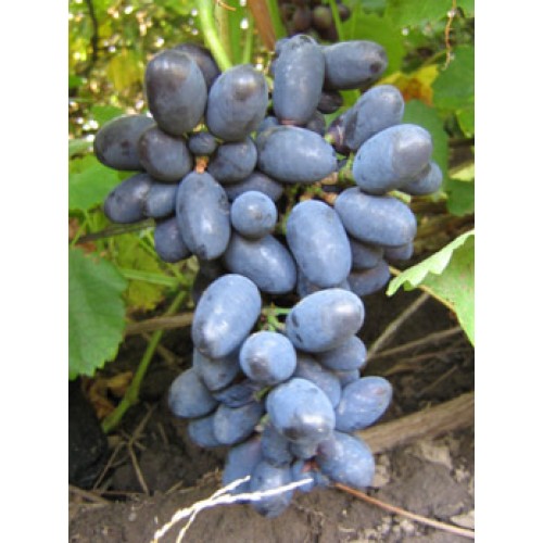 Ягода крупная (средний размер - 3 на 2.2 см.), средним весом 6-8 гр. По форме ягода продолговатая, имеет красивый темно-фиолетовый цвет. Семена в ягодах практически отсутствуют (1-2 косточки). Мякоть сочная, ароматная, хрустящая со средней плотностью и слабо ощутимой в процессе еды кожицей. Вкус очень гармоничный - мягкий, сладкий с небольшой кислинкой.