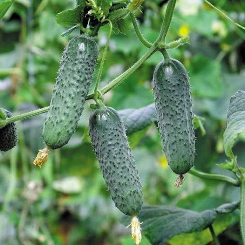 Плоди циліндричної форми, однорідні, довжиною 8-12 см, вагою до 100 г. Шкірка тонка, темно-зеленого кольору, вкрита великими горбками. М'якуш плодів смачний, солодкий, без порожнеч і гіркоти, дуже ароматний та хрумкий.